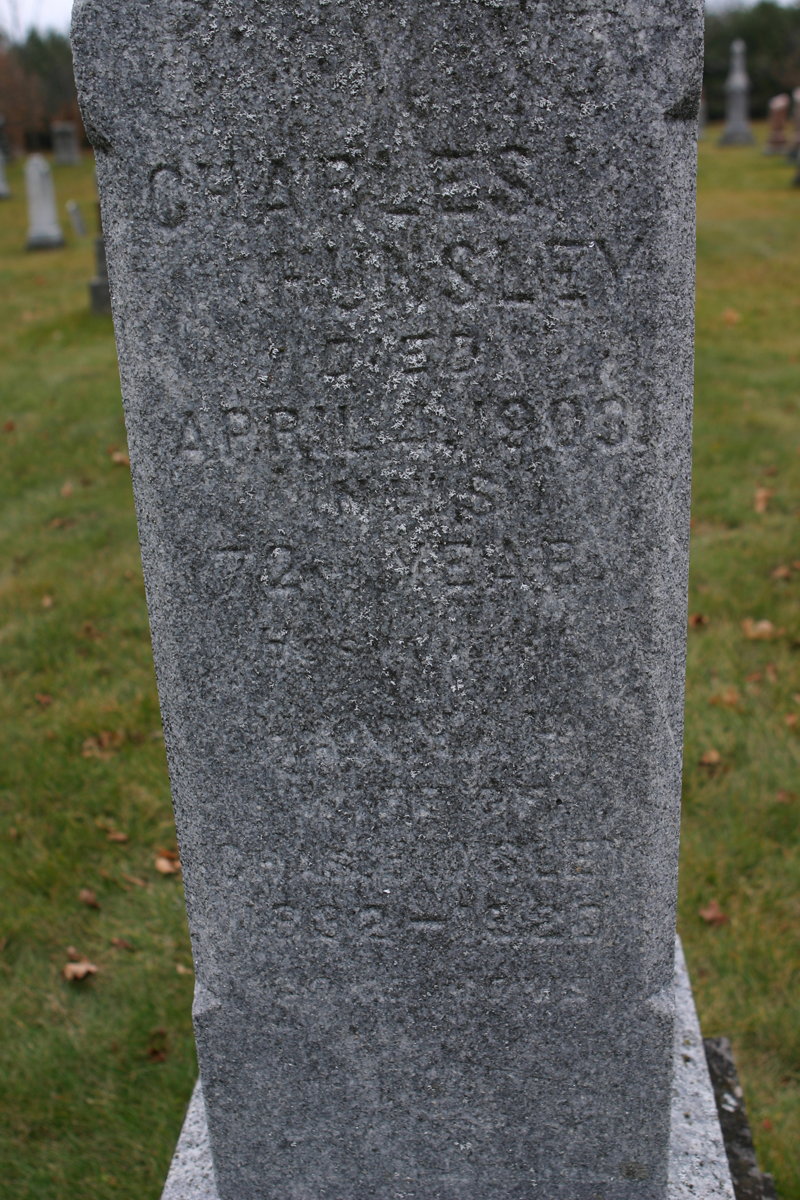 Charles HUNSLEY died April 4, 1903 in his 72nd year.